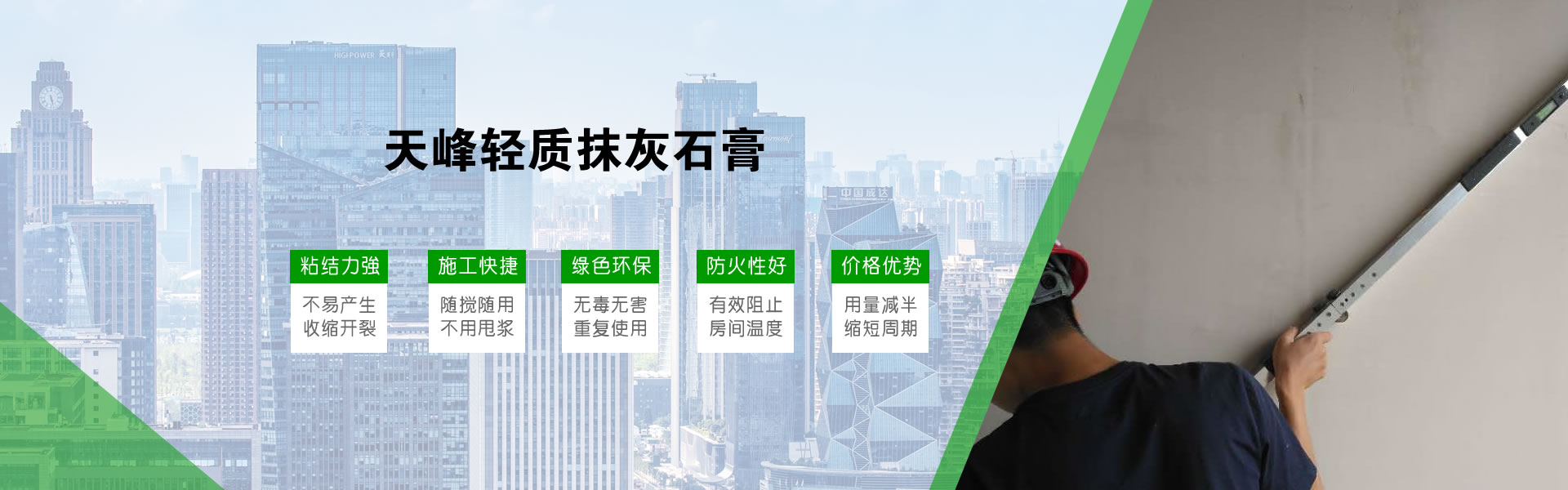 天峰抹灰石膏砂漿適用于3mm-50mm的抹灰厚度,是薄層抹灰的理想材料。此外,石膏中含有占分子量20%以上的結(jié)晶水,破壞這些結(jié)晶水的分子鍵需要消耗大量的熱量。在火災(zāi)條件下抹灰石膏抹灰層能延緩墻面升溫時(shí)間。